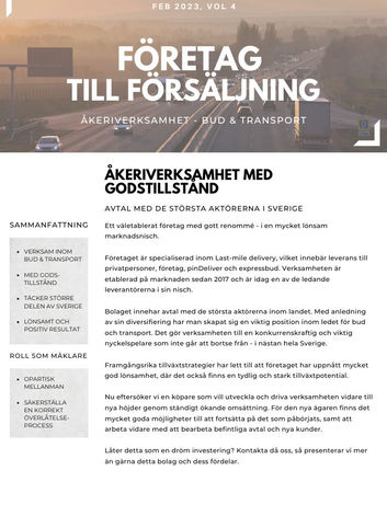Vi vet hur vi ska matcha rätt köpare med rätt företag, hur en affär byggs upp strategiskt och hur vi skapar trygghet genom hela processen. Det är det som gör att våra kunder återkommer – och rekommenderar oss vidare.